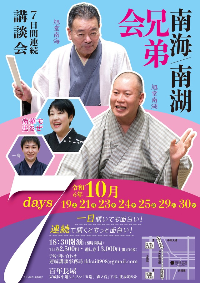 10/16『9日間連続講談会』~南海南湖兄弟会~@百年長屋 7日日 MP3 旭堂一海「木村の麻風呂敷」 旭堂南湖「中山安兵衛7」 旭堂南海「大丸屋騒動7」